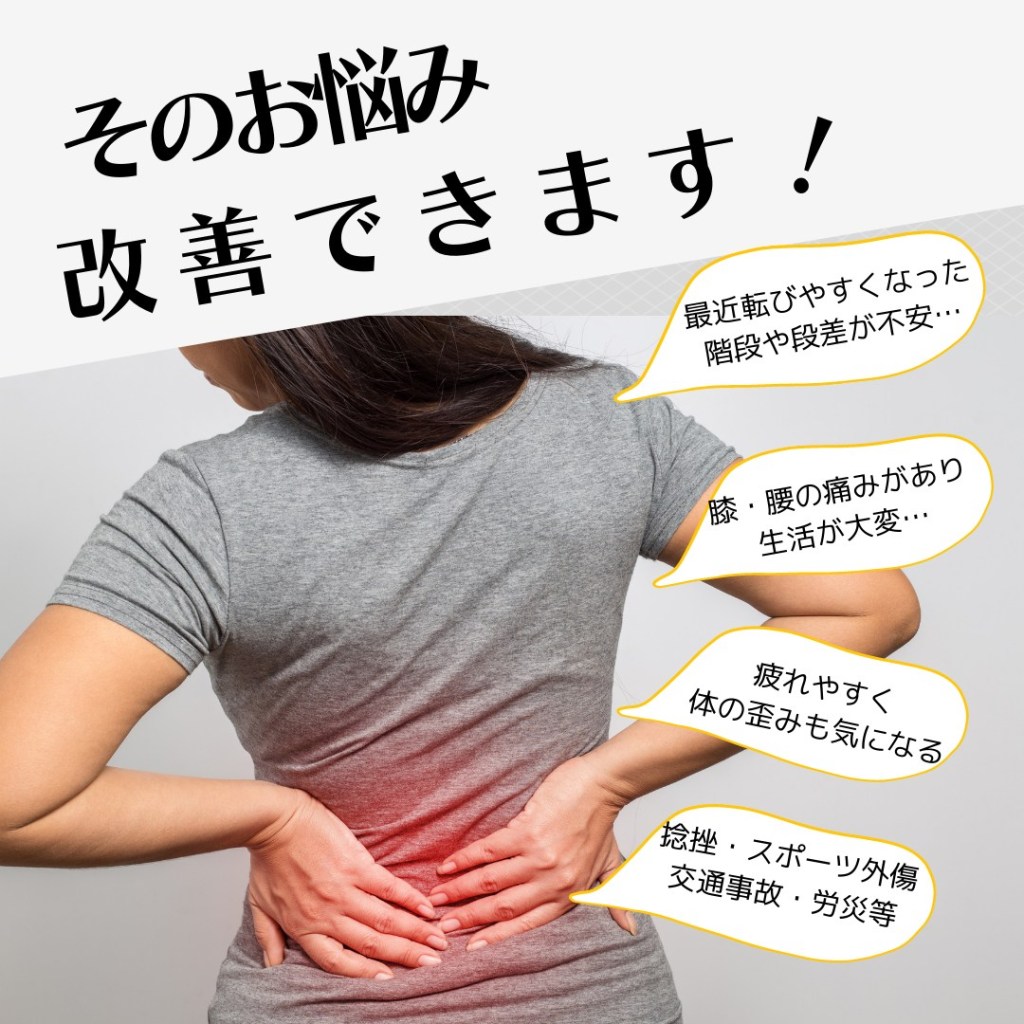 国家資格者が患者様の症状に合わせて施術スキルを使い分け、不調を取り除いてつらい症状を改善いたします。